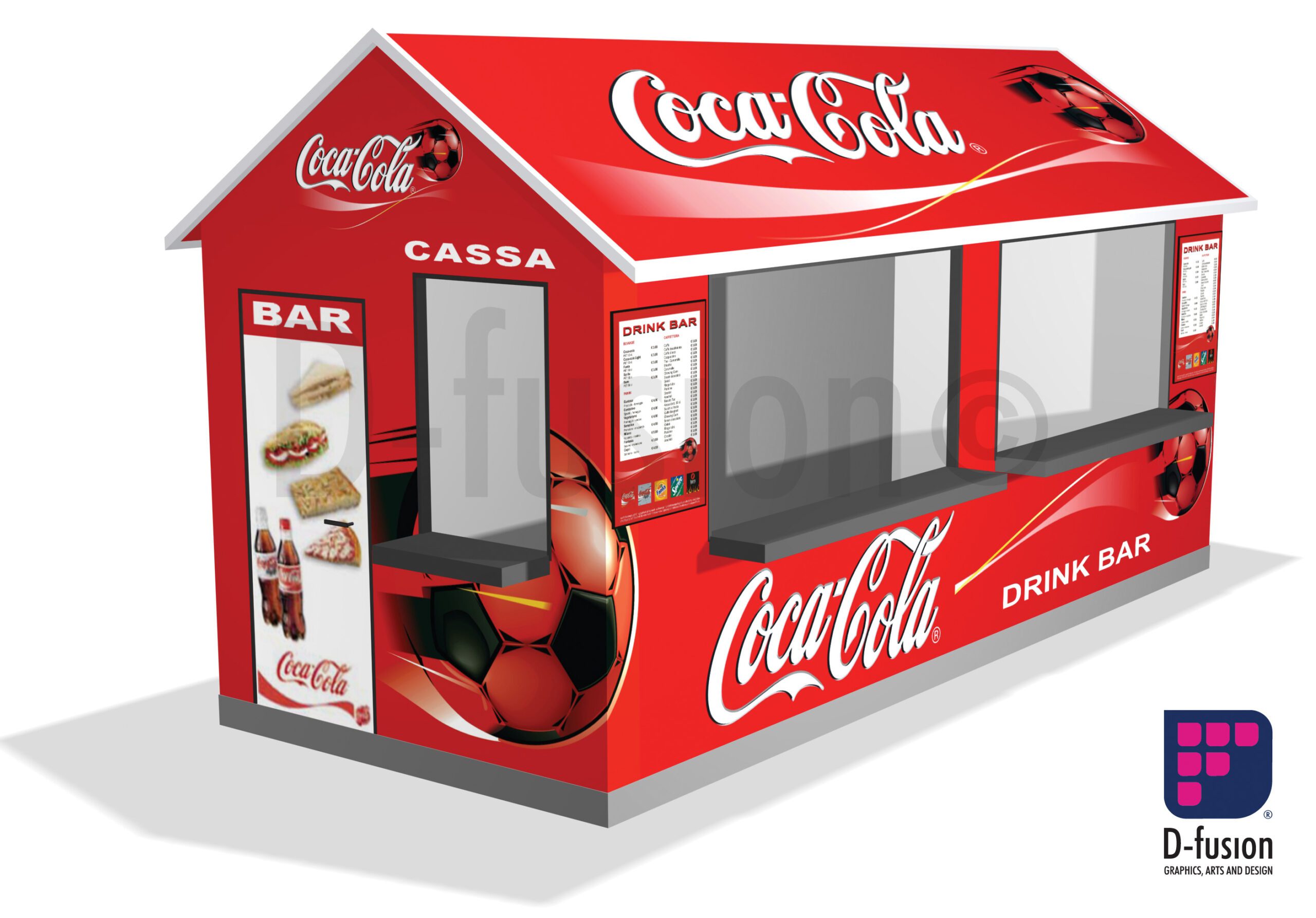 •The kiosks featured a fully customizable design, with graphics covering all six sides, including the roof. This approach elevated the visual identity of the structures, aligning them with Coca-Cola’s branding goals.