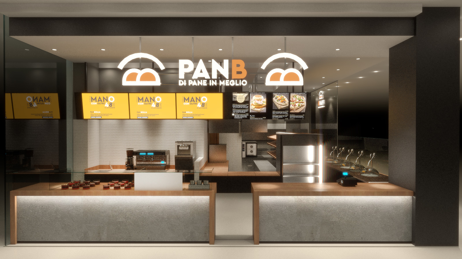 PanBolla is an innovative Italian fast-food brand that specializes in gourmet sandwiches crafted from semi-wholemeal flours, without the use of improvers or leavening accelerators. The unique aspect of PanBolla’s offering is their revolutionary bread, which is baked under a glass dome, allowing customers to witness the baking process firsthand. This method results in a sandwich with a thin, crispy crust and a soft, melt-in-the-mouth interior. The brand emphasizes high-quality, artisanal products, combining traditional baking techniques with modern culinary innovation.
